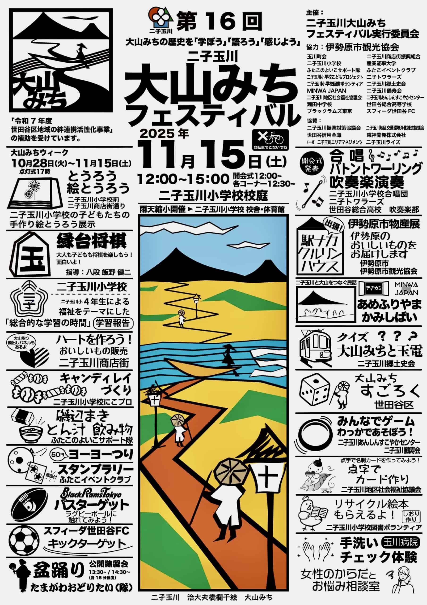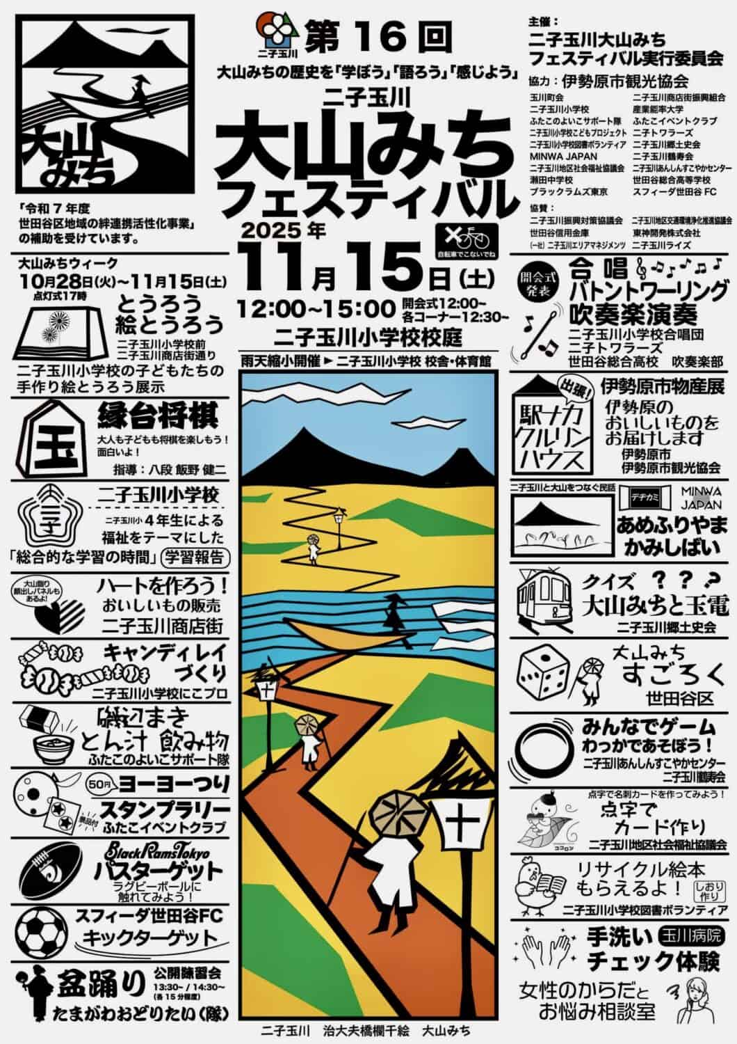 世田谷区立二子玉川小学校校庭で11月15日(土)12:00〜、「第16回 二子玉川大山みちフェスティバル」が開催されます。