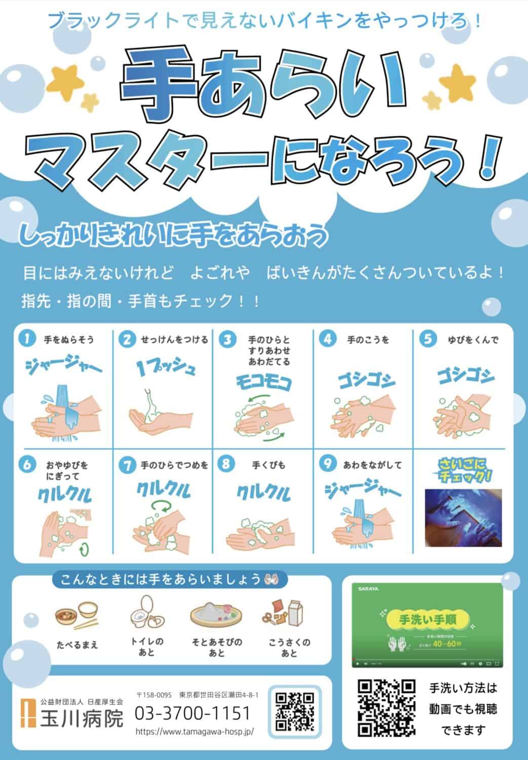ひとつは「手洗いチェック体験」。ブラックライトを使って洗い残しを確認しながら、親子で楽しく学べる人気企画です。