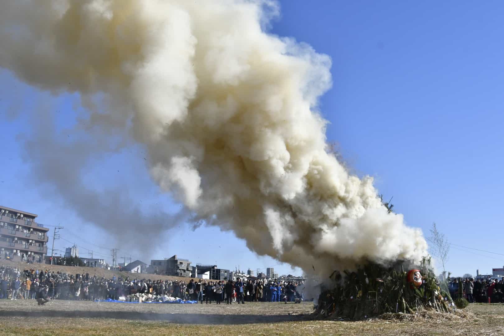 多摩川河川敷・二子玉川緑地運動場で、今年も1月18日(日)、鎌田南睦会主催による「どんど焼き」が執り行われます。